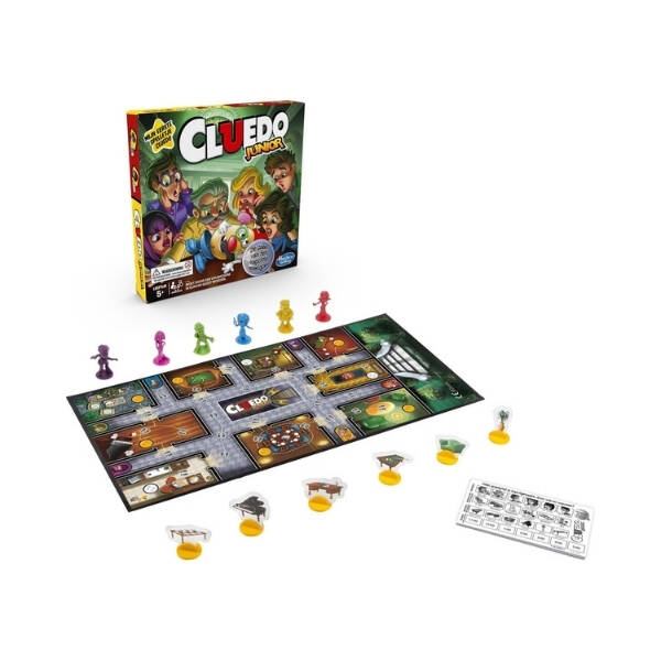 Kleuters kunnen nu ook meedoen met het oplossen van mysteries met dit Cluedo Junior-spel, met 2 meegroei-niveaus! Dit detectivebordspel voor kinderen vanaf 5 jaar bevat een dubbelzijdig spelbord met 2 spelniveaus.